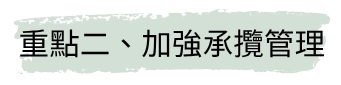 改革議題 平行分包廠商各管各的,又層層轉包責任不明工作危害無人統合。
