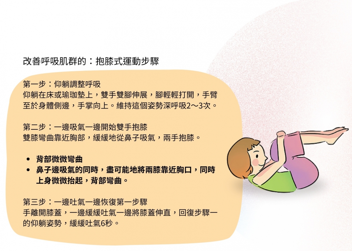 日本東京有明醫療大學校長本間生夫表示,平時大家雖然都會無意識的呼吸,但實際上肺不會自己活動,要靠橫膈膜與肋骨周圍的肌肉,才能伸縮肺部,而這些肌肉就稱為呼吸肌,多為維持姿勢不可缺少的體幹肌肉。
