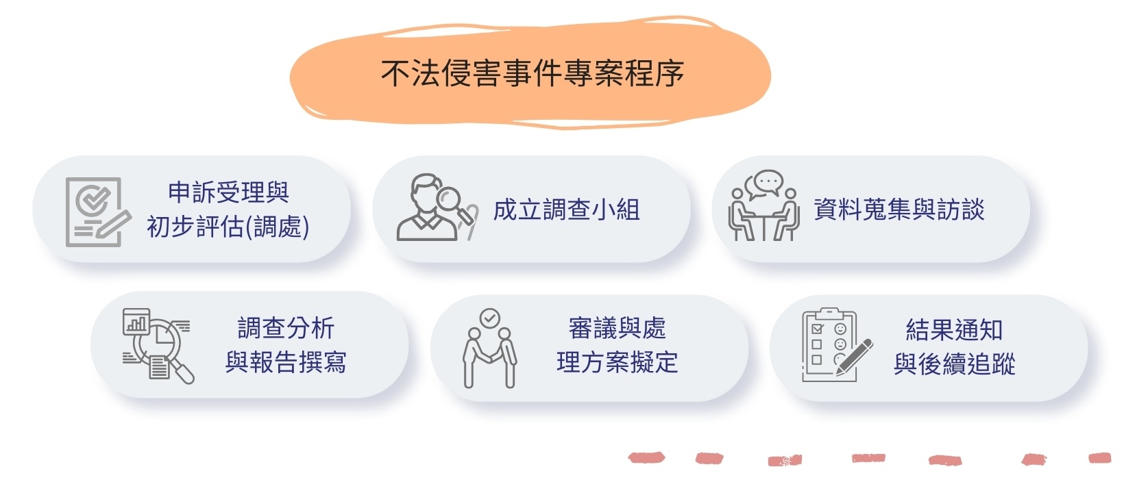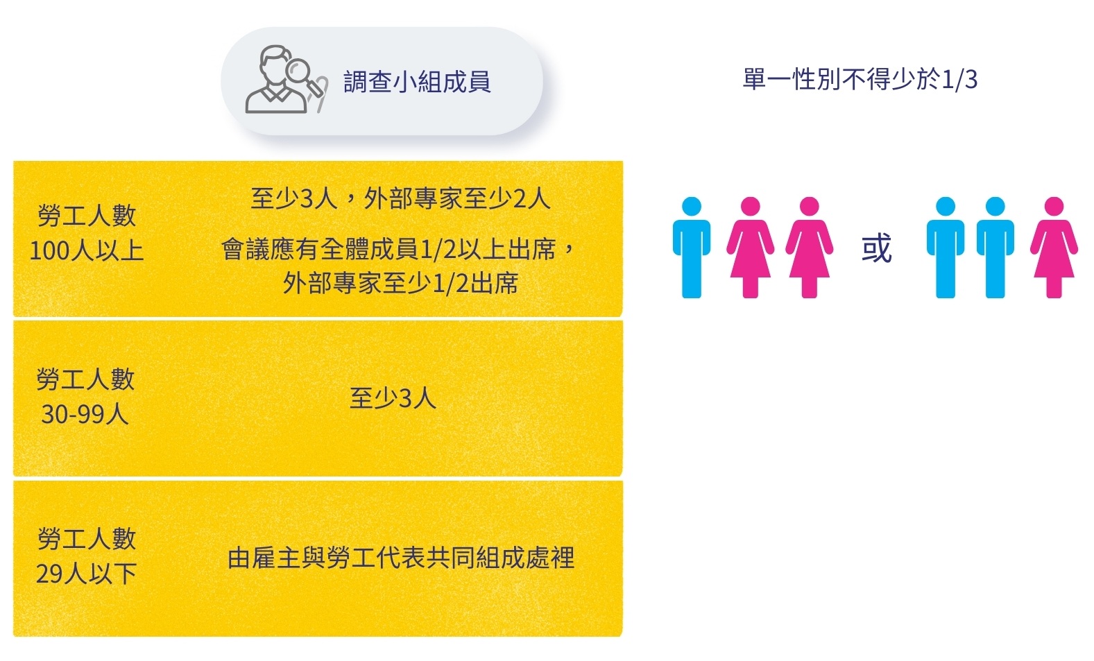 - 事業單位可視事件情節,委外專業人員處理調查。