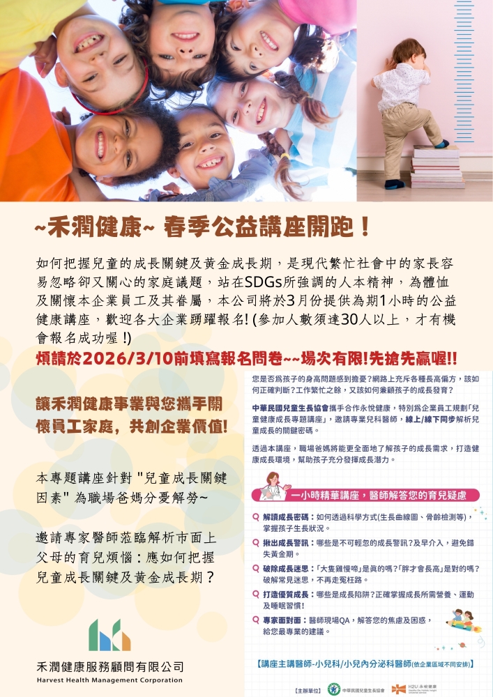 企業內健康保護協助、自然備孕之旅、賀爾蒙健康與平衡、孕期的心理壓力調適、生殖醫學、多囊性卵巢症候群診斷及治療、AMH檢測與凍卵介紹、生殖醫學簡介及補助