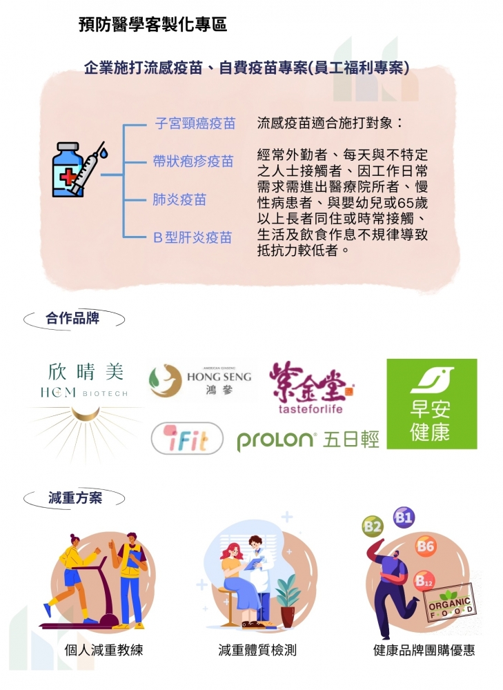 協助企業舉辦內部健康活動,提升產能之餘更重視員工健康及福祉。